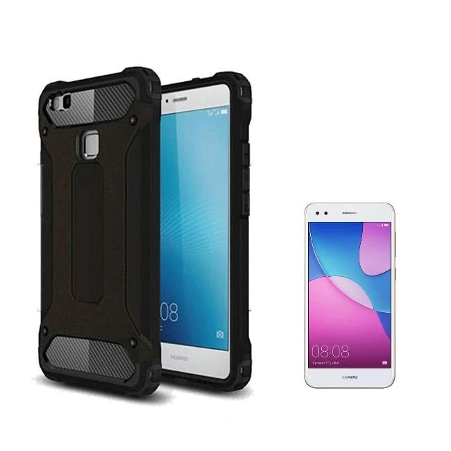 Teleplus Huawei P9 Lite Mini Çift Katmanlı Tank Kapak Kılıf Nano Glass Cam Siyah