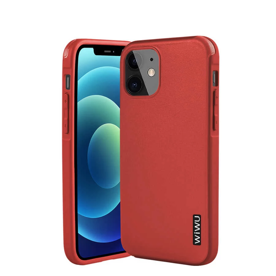 Teleplus iPhone 12 Kılıf Wiwu Sand Stone Suni Deri Shockproof Tank Kapak Kırmızı