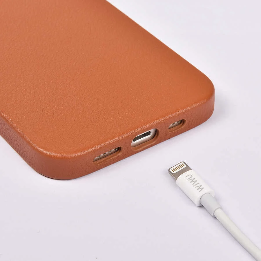 Teleplus iPhone 13 Mini Kılıf Wiwu Calfskin Deri Kapak Silikon Siyah