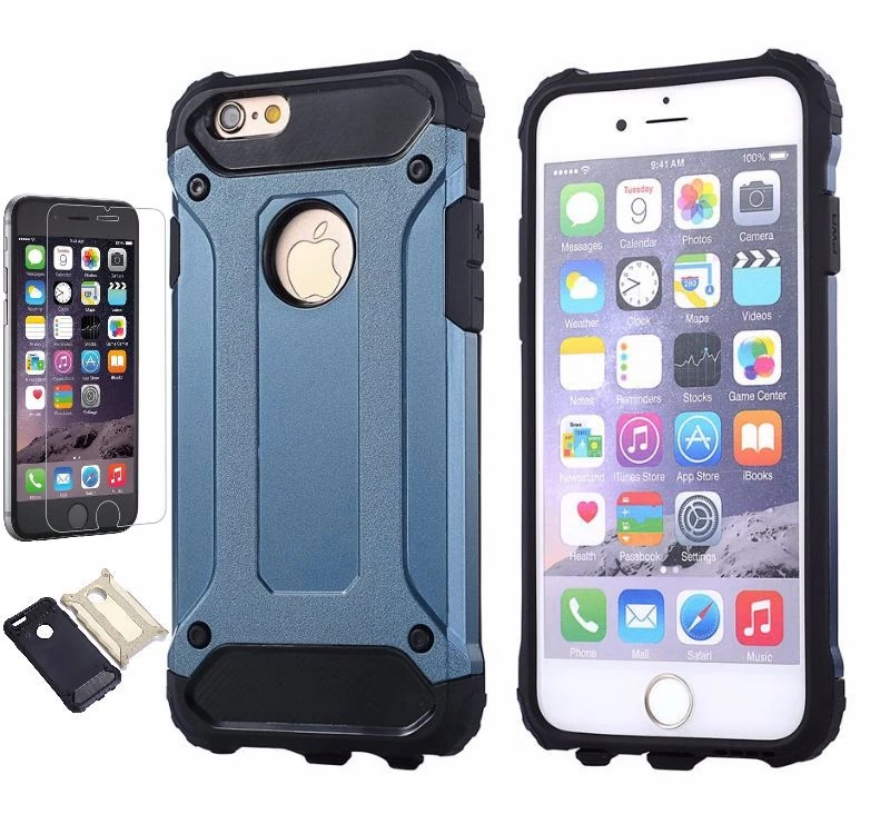 Teleplus iPhone 6 Çift Katmanlı Tank Kapak Kılıf Cam Ekran Koruyucu Mavi