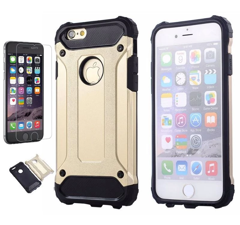 Needion - Teleplus İPhone 6 Plus Çift Katmanlı Tank Kapak Kılıf   Cam Ekran Koruyucu Gold