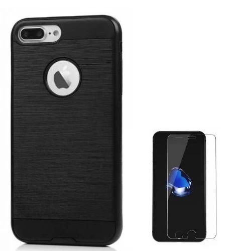 Needion - Teleplus iPhone 7 Plus Çift Katmanlı Verus Kılıf   Cam Ekran Koruyucu Siyah