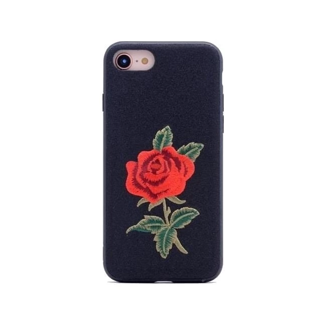 iPhone 8 Gül Desenli Dikişli Silikon Kılıf Siyah
