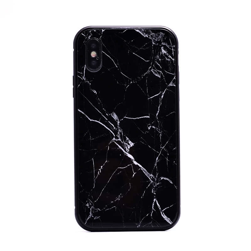 Needion - Teleplus iPhone X Kılıf Mermer Desenli 360 Mıknatıslı Metal    Tam Kapatan Cam Siyah