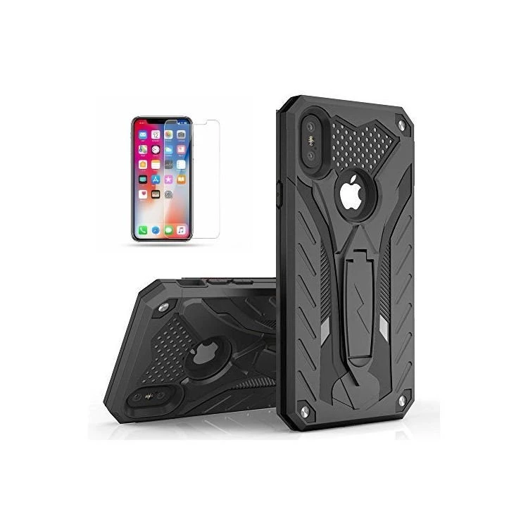 Needion - Teleplus iPhone X Kılıf Standlı Tank Kapak    Cam Ekran Koruyucu Siyah
