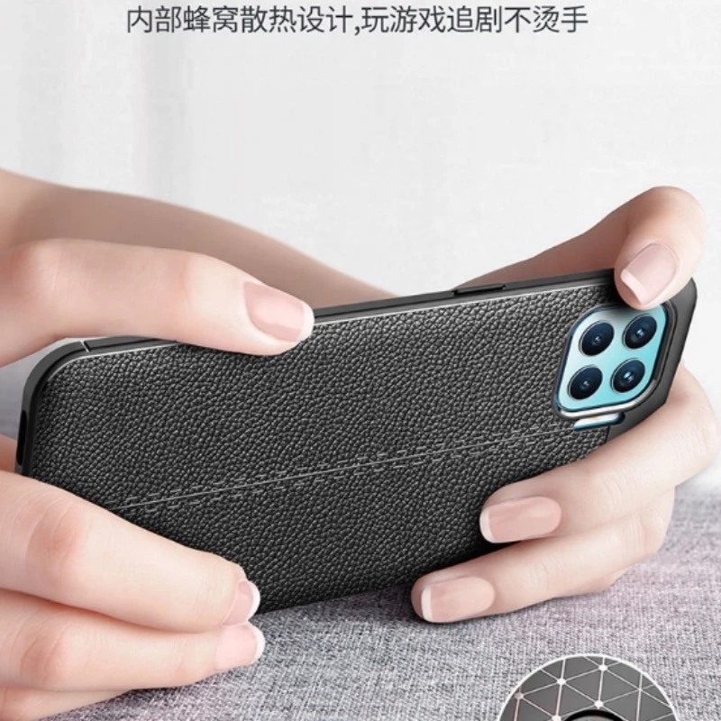 Teleplus Oppo A73 Kılıf Deri Dokulu Silikon Nano Ekran Koruyucu Siyah