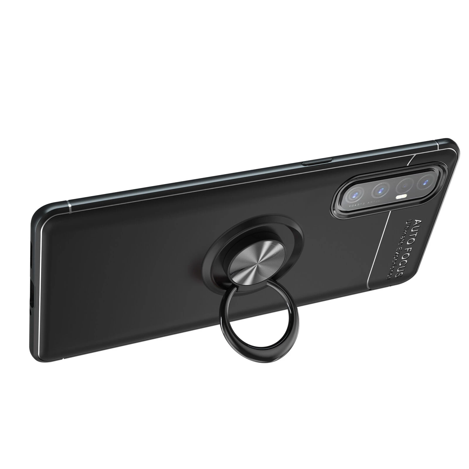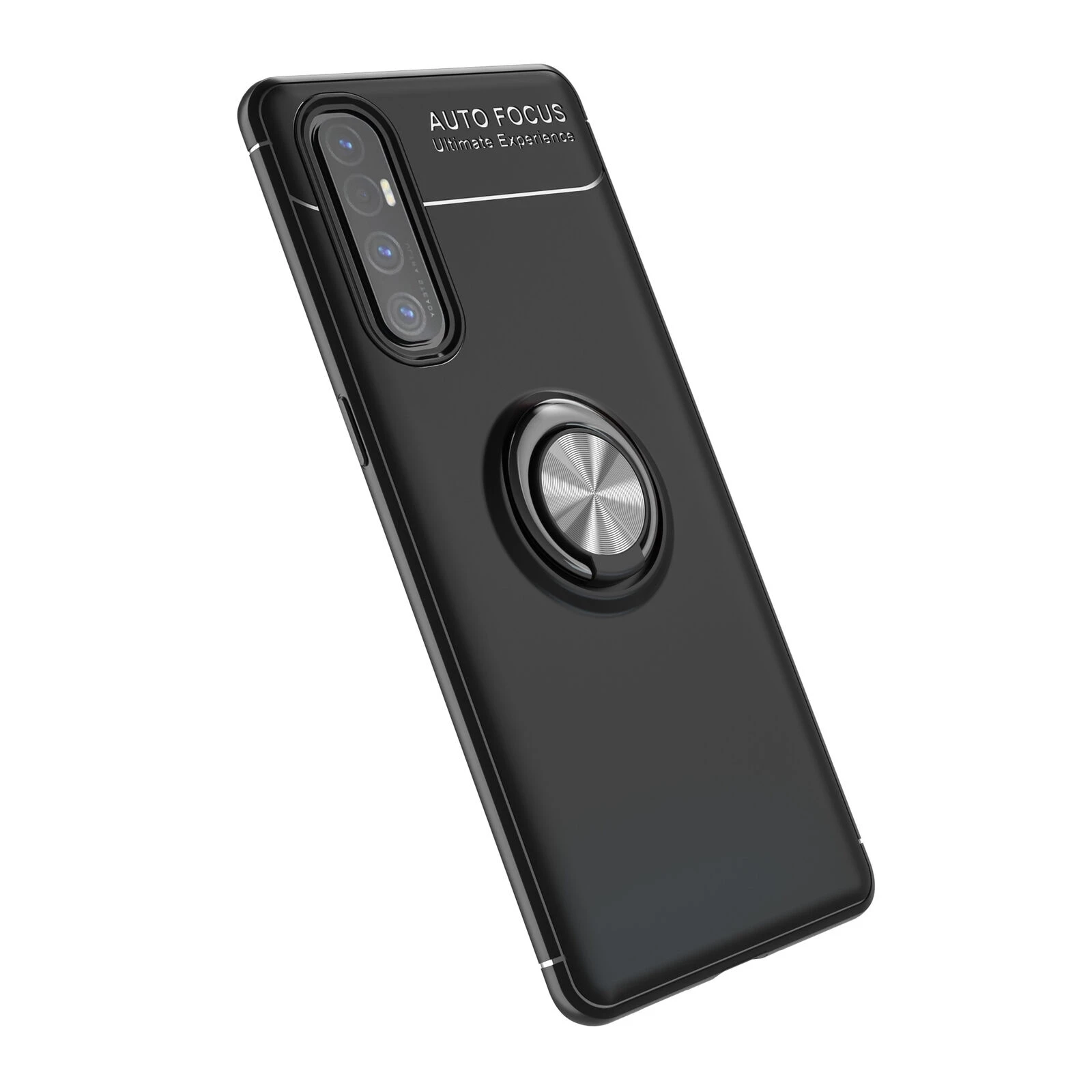 Teleplus Oppo Reno3 Pro 5g Kılıf Ravel Yüzüklü Standlı Silikon Tam Kapatan Ekran Koruyucu Siyah