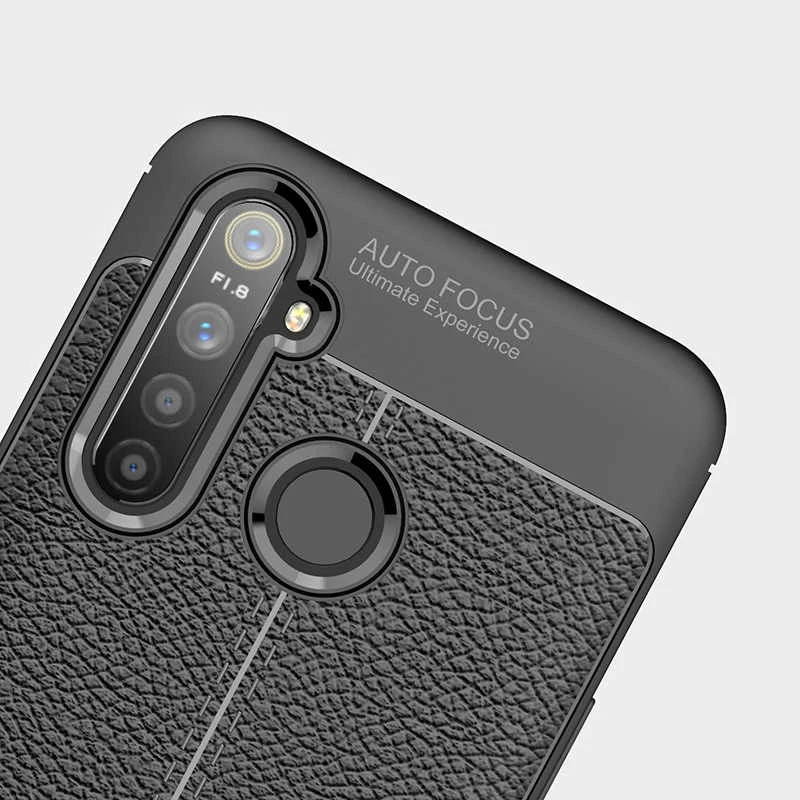 Teleplus Realme 5İ Kılıf Deri Dokulu Silikon Nano Ekran Koruyucu Siyah