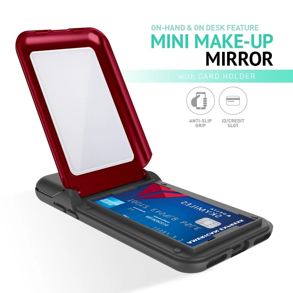 Needion - Teleplus ROAR iPhone 7 Aynalı Kartlıklı Kapak Kılıf   Nano Ekran Koruyucu Siyah