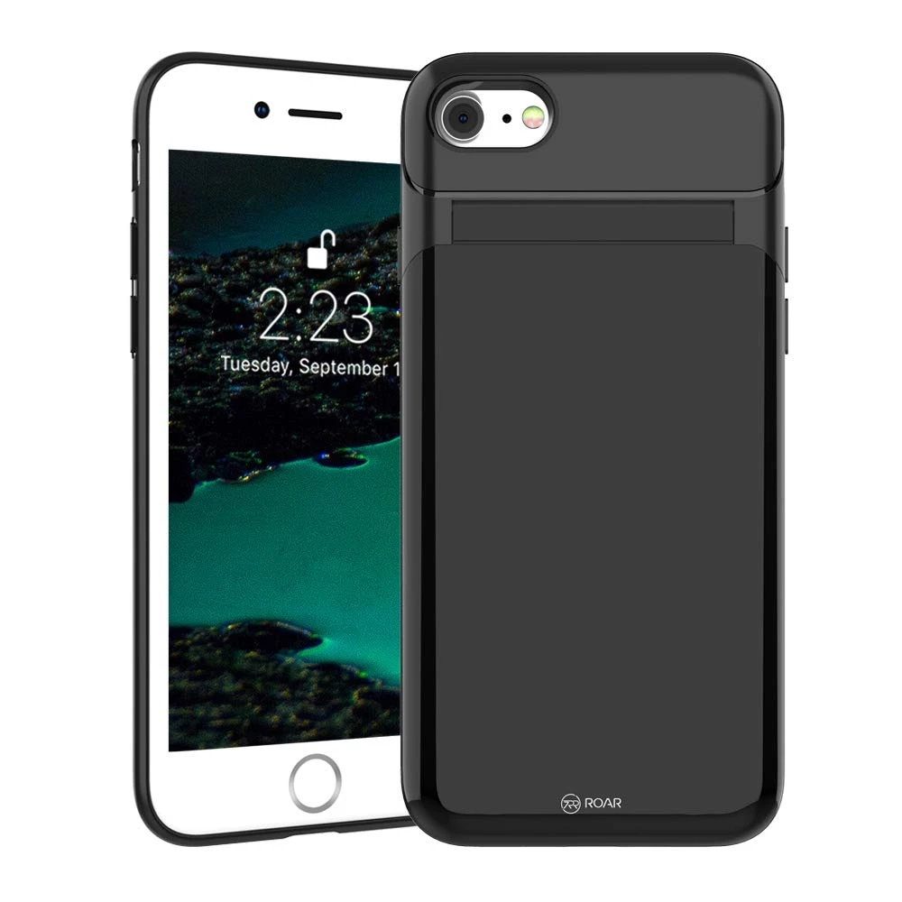 Teleplus ROAR iPhone 7 Aynalı Kartlıklı Kapak Kılıf Nano Ekran Koruyucu Siyah