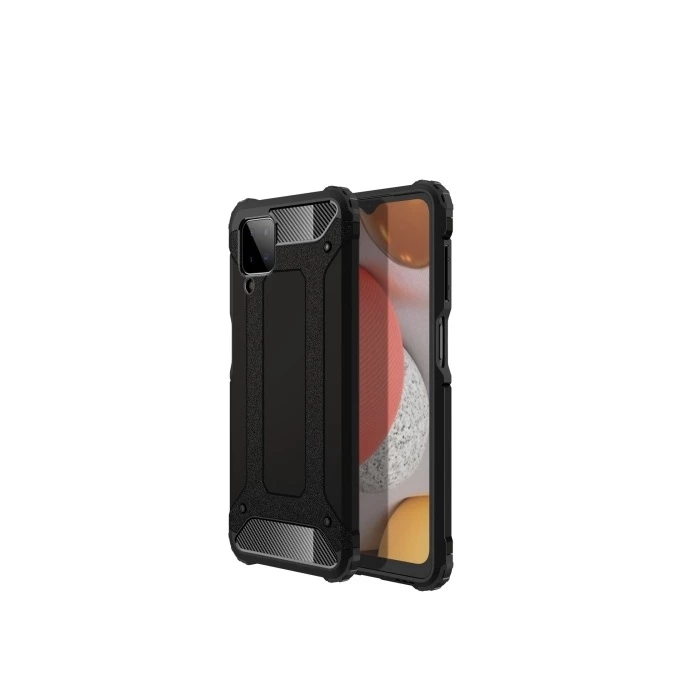 Teleplus Samsung Galaxy A12 Kılıf Çift Katmanlı Tank Silikon Nano Ekran Koruyucu Siyah