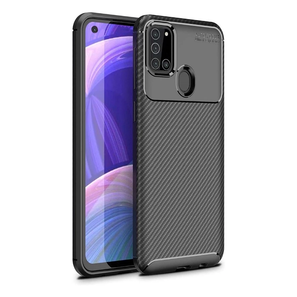 Teleplus Samsung Galaxy A21S Kılıf Negro Karbon Silikon Nano Ekran Koruyucu Siyah