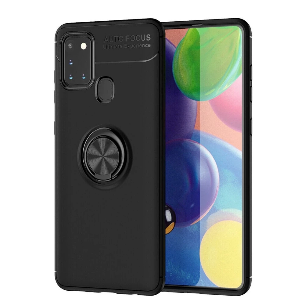 Teleplus Samsung Galaxy A21S Kılıf Ravel Yüzüklü Silikon Nano Ekran Koruyucu Siyah