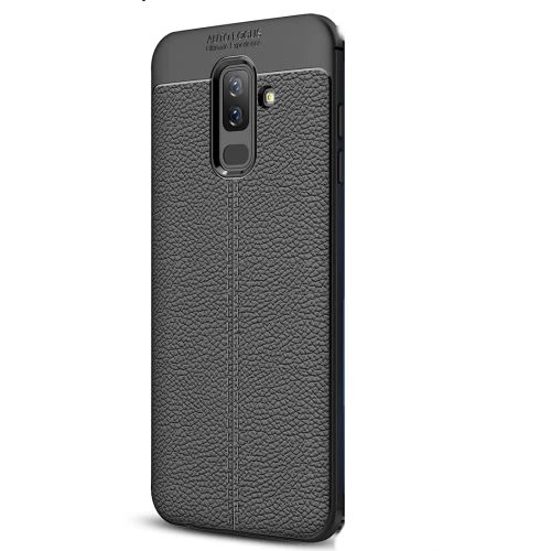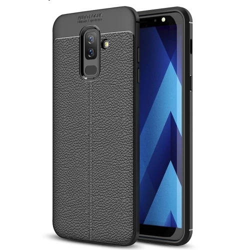 Teleplus Samsung Galaxy A6 2018 Plus Deri Dokulu Silikon Kılıf Tam Kapatan Cam Siyah