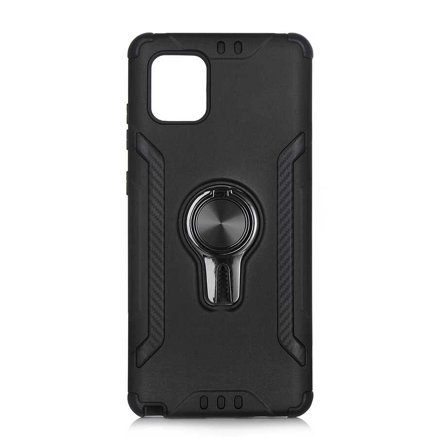 Needion - Teleplus Samsung Galaxy A81 Kılıf Kamera Korumalı Coco Standlı Yüzüklü Tank Kapak   Nano Ekran Koruyucu Siyah