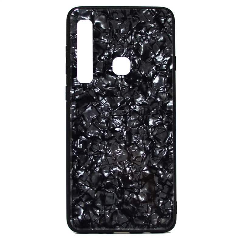 Teleplus Samsung Galaxy A9 2018 Marbel Desenli Cam Silikonlu Kılıf Nano Ekran Koruyucu Siyah