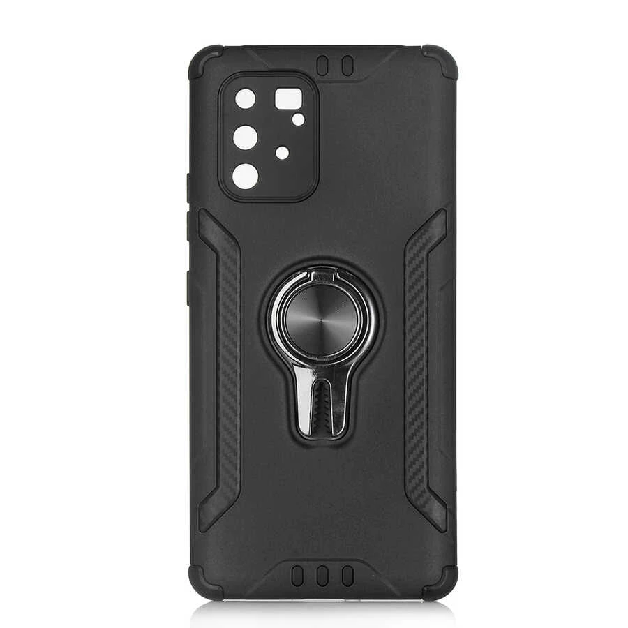 Teleplus Samsung Galaxy A91 Kılıf Kamera Korumalı Coco Standlı Yüzüklü Tank Kapak Nano Ekran Koruyucu Siyah