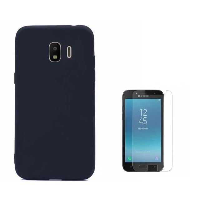 Needion - Teleplus Samsung Galaxy J2 Pro Lüks Silikonlu Kılıf   Cam Ekran Koruyucu Siyah