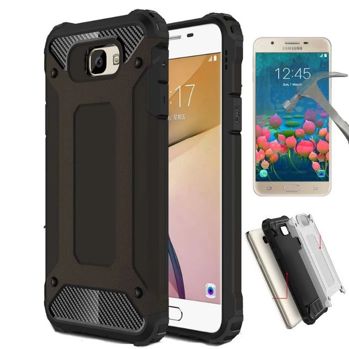 Needion - Teleplus Samsung Galaxy J5 Prime Çift Katmanlı Tank Kapak Kılıf   Cam Ekran Koruyucu Siyah