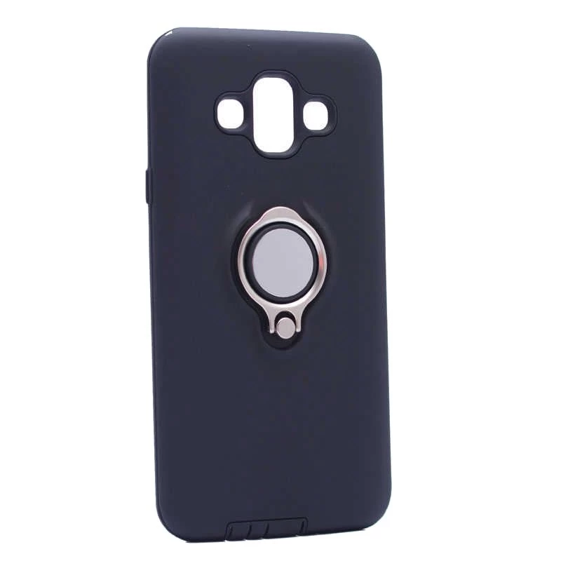 Needion - Teleplus Samsung Galaxy J7 Duo Çift Katmanlı Yüzüklü Kapak Kılıf   Nano Ekran Koruyucu Siyah