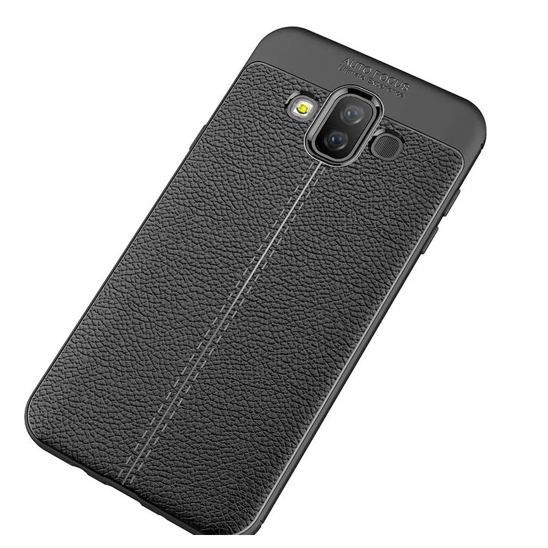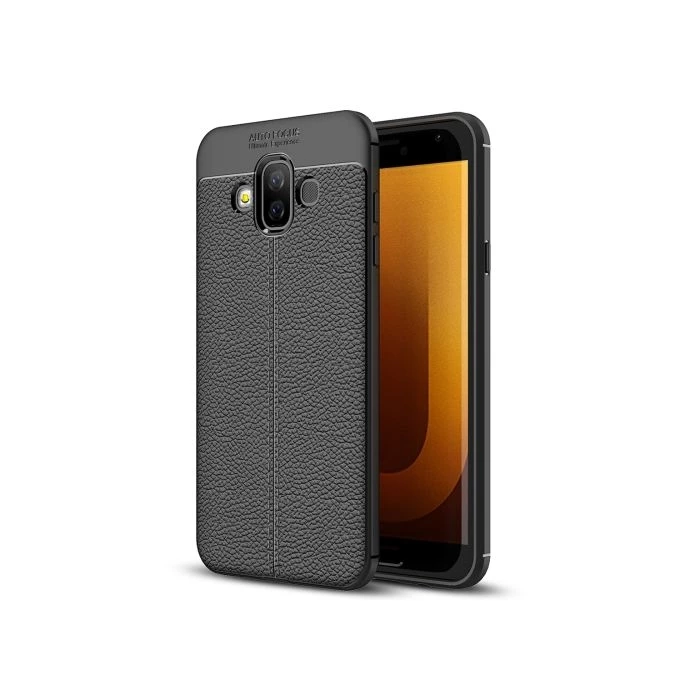 Teleplus Samsung Galaxy J7 Duo Deri Dokulu Silikon Kılıf Nano Ekran Koruyucu Siyah