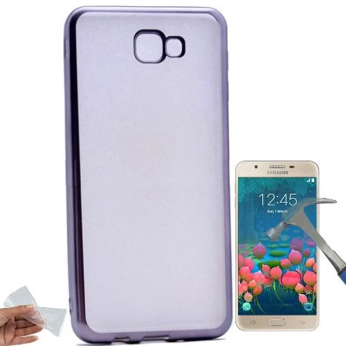 Teleplus Samsung Galaxy J7 Prime Lazer Kesimli Silikon Kılıf Cam Ekran Koruyucu Siyah