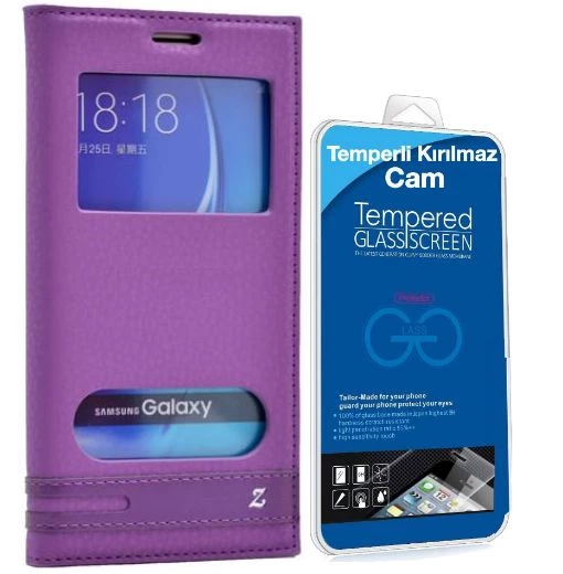 Teleplus Samsung Galaxy J710 - 2016 Çift Pencereli Kılıf Cam Ekran Koruyucu Mor