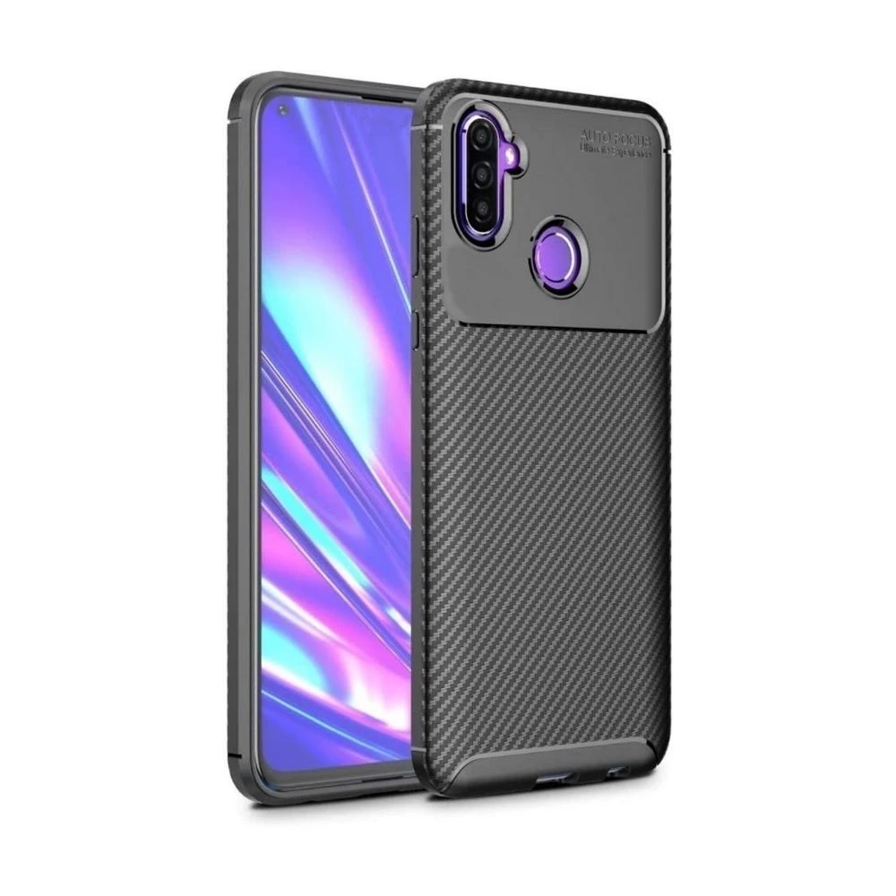 Teleplus Samsung Galaxy M11 Kılıf Negro Karbon Silikon Tam Kapatan Ekran Koruyucu Siyah