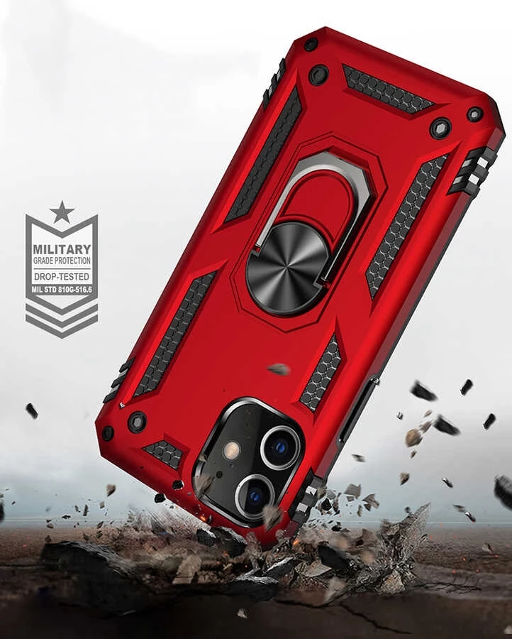 Needion - Teleplus Samsung Galaxy M31S Kılıf Vega Yüzüklü Çift Katmanlı Tank Kapak   Nano Ekran Koruyucu Siyah