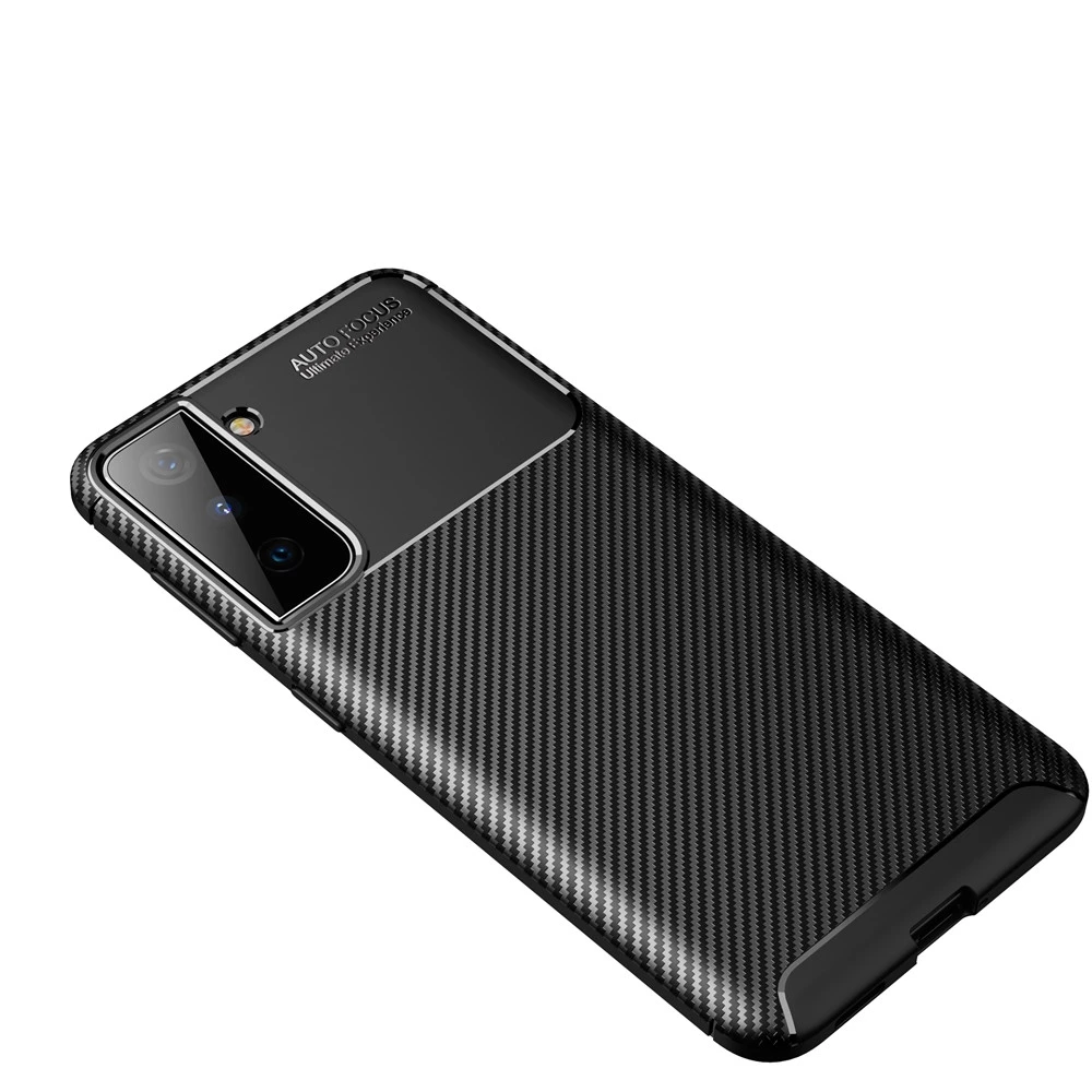 Teleplus Samsung Galaxy S21 Plus 5G Kılıf Karbon Dokulu Negro Silikon Nano Ekran Koruyucu Lacivert