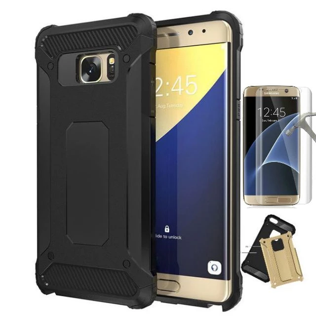 Needion - Teleplus Samsung Galaxy S7 EDGE Çift Katmanlı Tank Kapak Kılıf   Cam Ekran Koruyucu Siyah