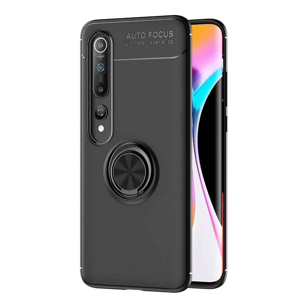 Needion - Teleplus Xiaomi Mi 10 Kılıf Ravel Yüzüklü Standlı Silikon  Siyah