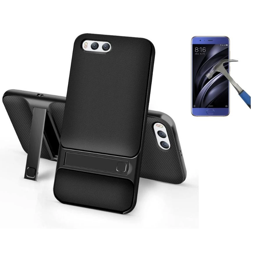 Needion - Teleplus Xiaomi Mi 6 Standlı Korumalı Silikon Kılıf   Nano Ekran Koruyucu Siyah