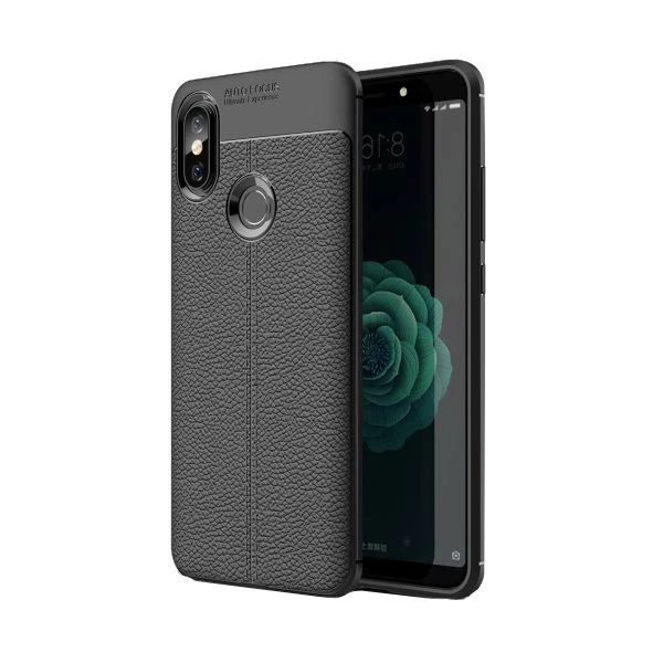 Needion - Teleplus Xiaomi Mi 6X Deri Dokulu Silikon Kılıf  Siyah