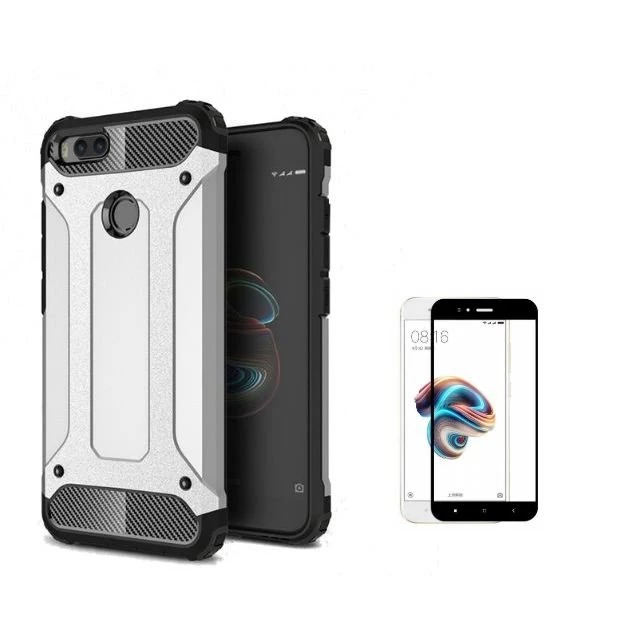 Needion - Teleplus Xiaomi Mi A1 Çift Katmanlı Tank Kapak Kılıf   Tam Kapatan Cam  Gri