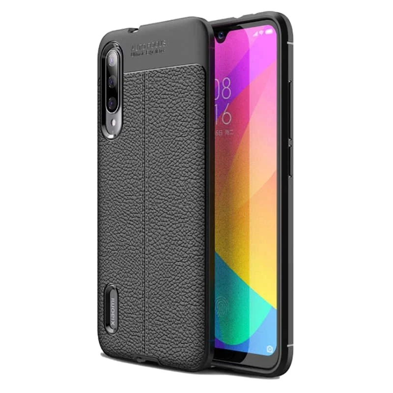 Teleplus Xiaomi Mi A3 Kılıf Deri Dokulu Silikon Siyah