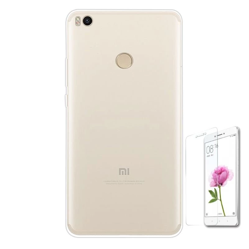 Teleplus Xiaomi Mi Max 2 ince Silikon Kılıf Cam Ekran Koruyucu Şeffaf