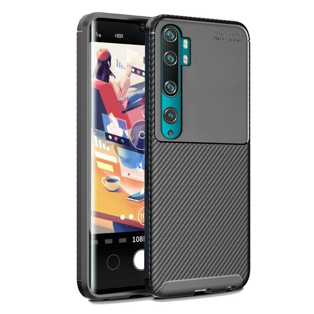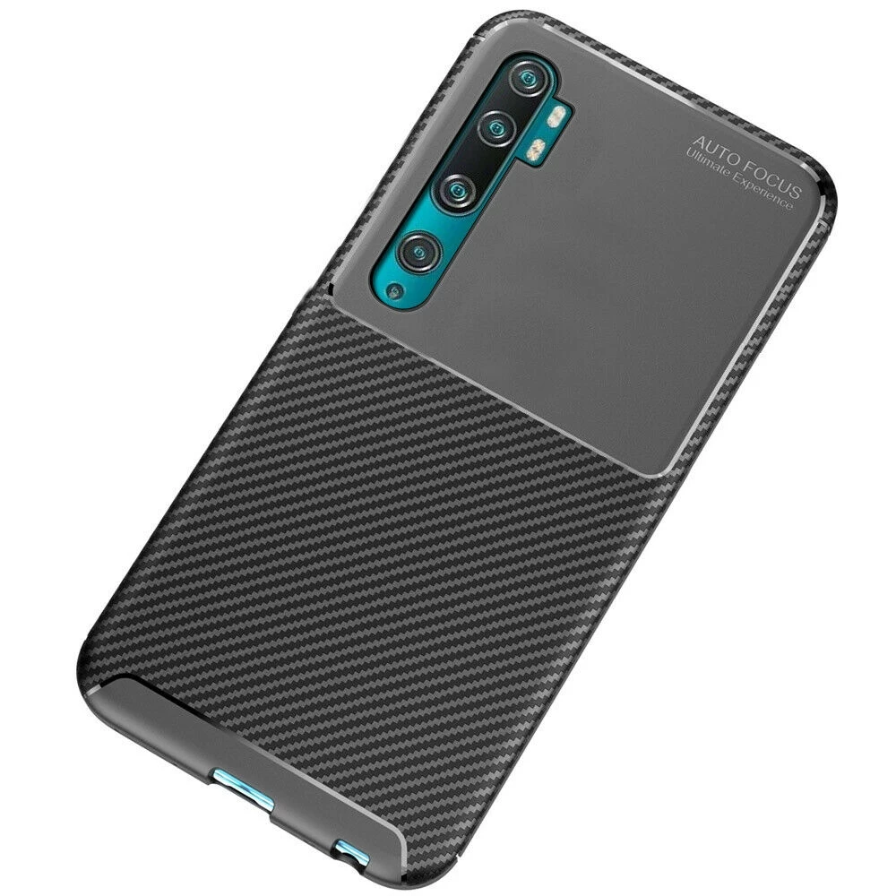 Teleplus Xiaomi Mi Note 10 Kılıf Negro Karbon Desenli Silikon Pet Tpu Ekran Koruyucu Siyah