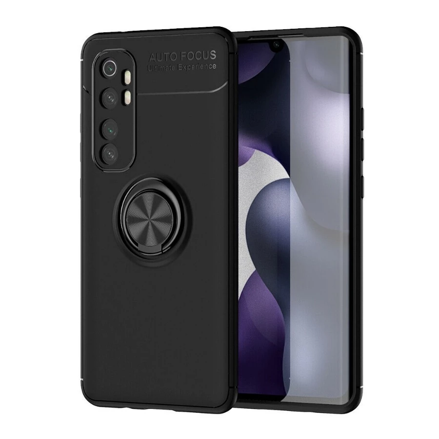 Needion - Teleplus Xiaomi Mi Note 10 Lite Kılıf Ravel Yüzüklü Standlı Silikon  Siyah