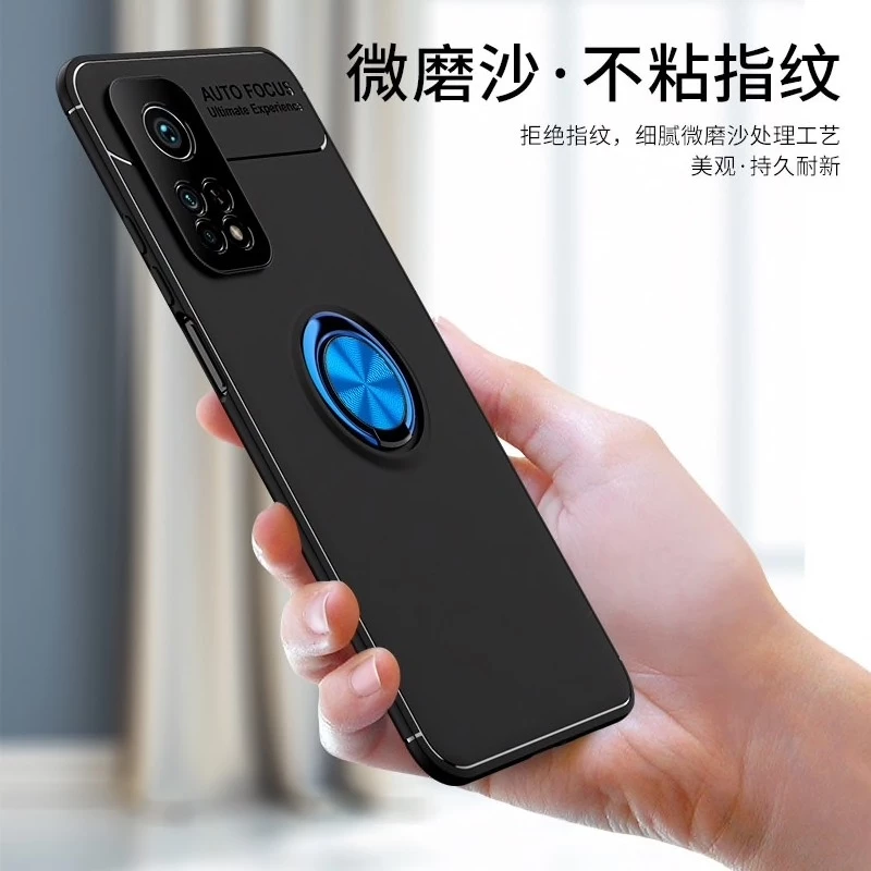 Teleplus Xiaomi Mi10T Pro Kılıf Ravel Yüzüklü Standlı Silikon Nano Ekran Koruyucu Siyah