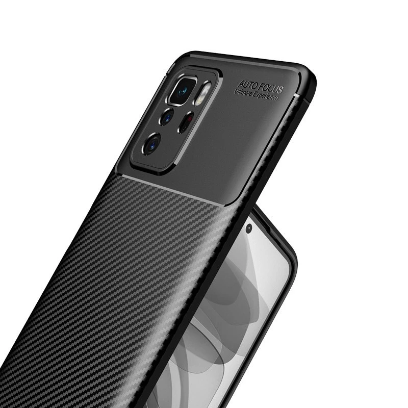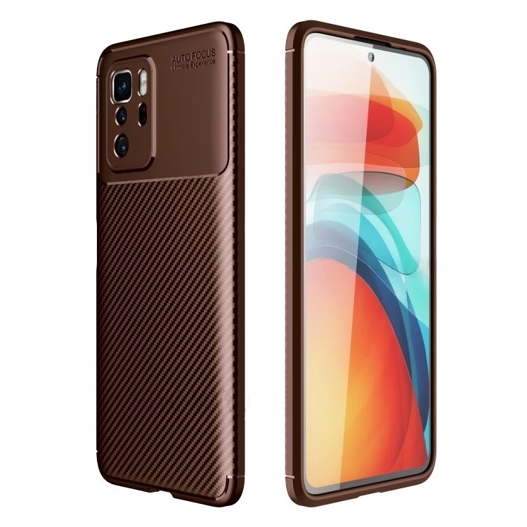 Needion - Teleplus Xiaomi Poco X3 GT Kılıf Kamera Korumalı Karbon Silikon  + Nano Ekran Koruyucu Kahverengi