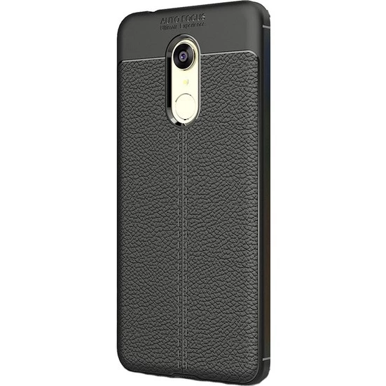 Needion - Teleplus Xiaomi Redmi 5 Plus Deri Dokulu Silikon Kılıf   Nano Ekran Koruyucu Siyah