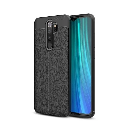 Teleplus Xiaomi Redmi Note 8 Pro Kılıf Deri Dokulu Silikon Tam Kapatan Cam Siyah