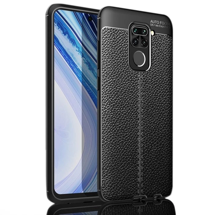 Teleplus Xiaomi Redmi Note 9 Kılıf Deri Dokulu Silikon Siyah