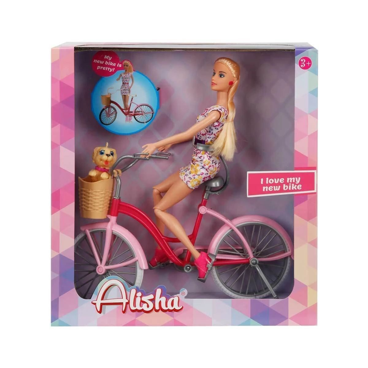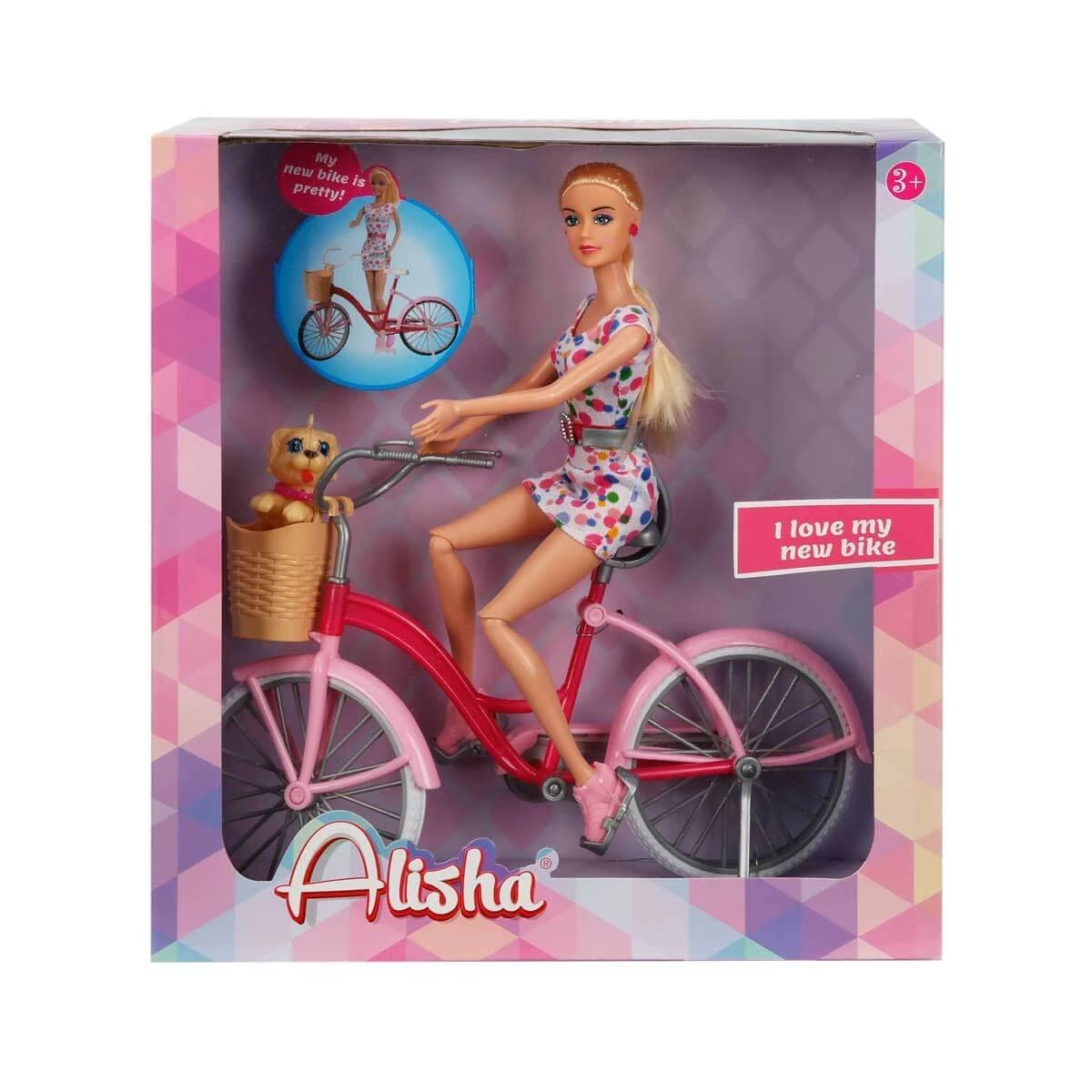 29 cm. uzunluğundaki Alisha bebek sevimli hayvan dostu ile birlikte bisiklete binmeyi çok seviyor. Şık tasarıma sahip pembe renkli bisikletin sepetine sevimliği köpeği yerleştirin Alisha bebeği bisiklet koltuğuna oturtun ve eğlenceli oyunlara başlayın! Üstelik Alisha bebeğin mini elbisesi ve pembe spor ayakkabısı ile gezintiye çıkmak için hazır!