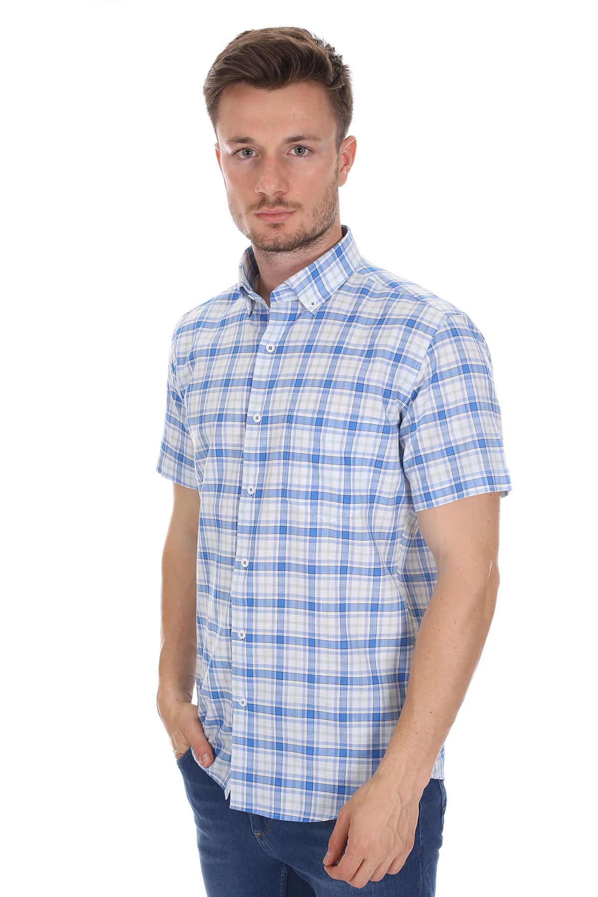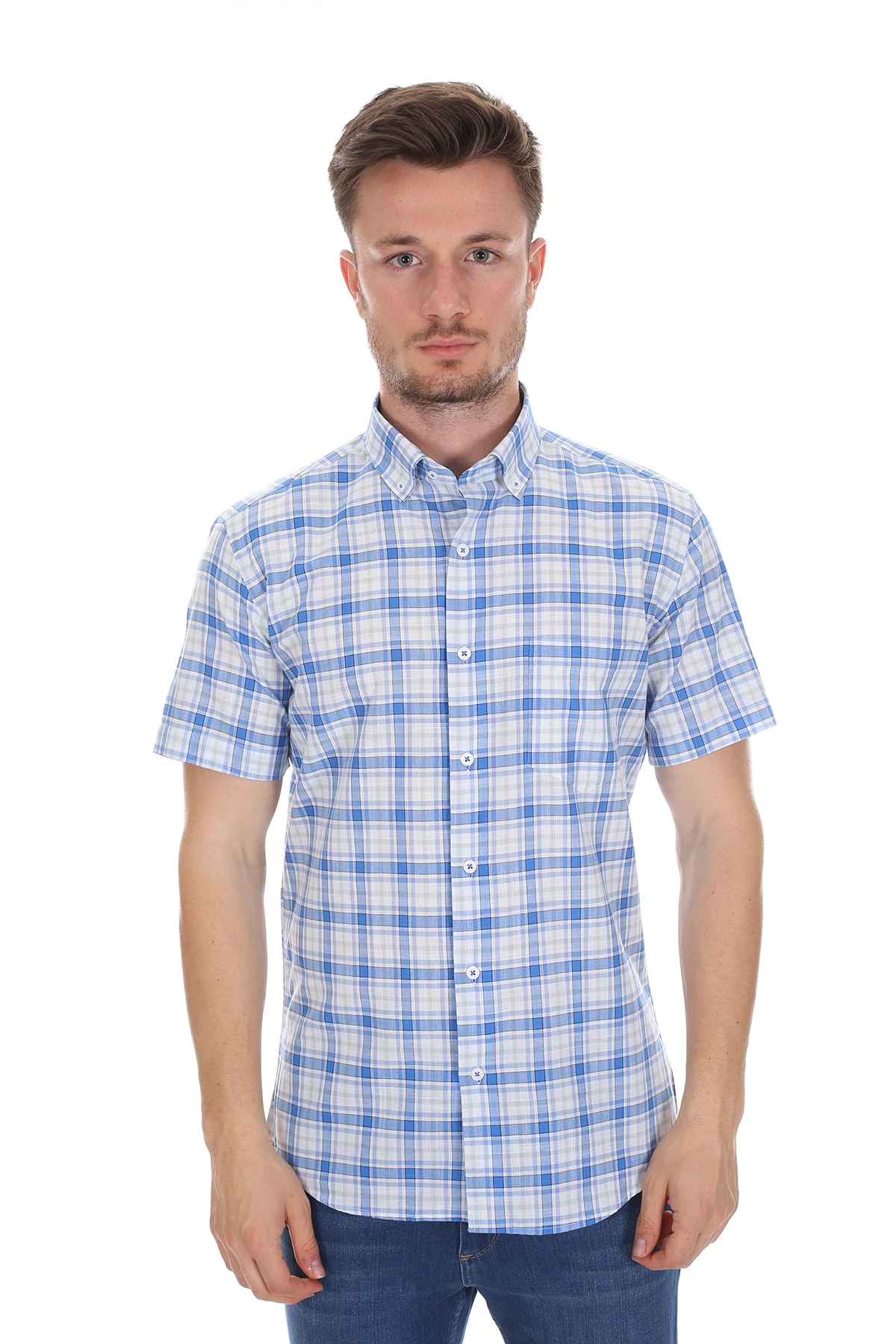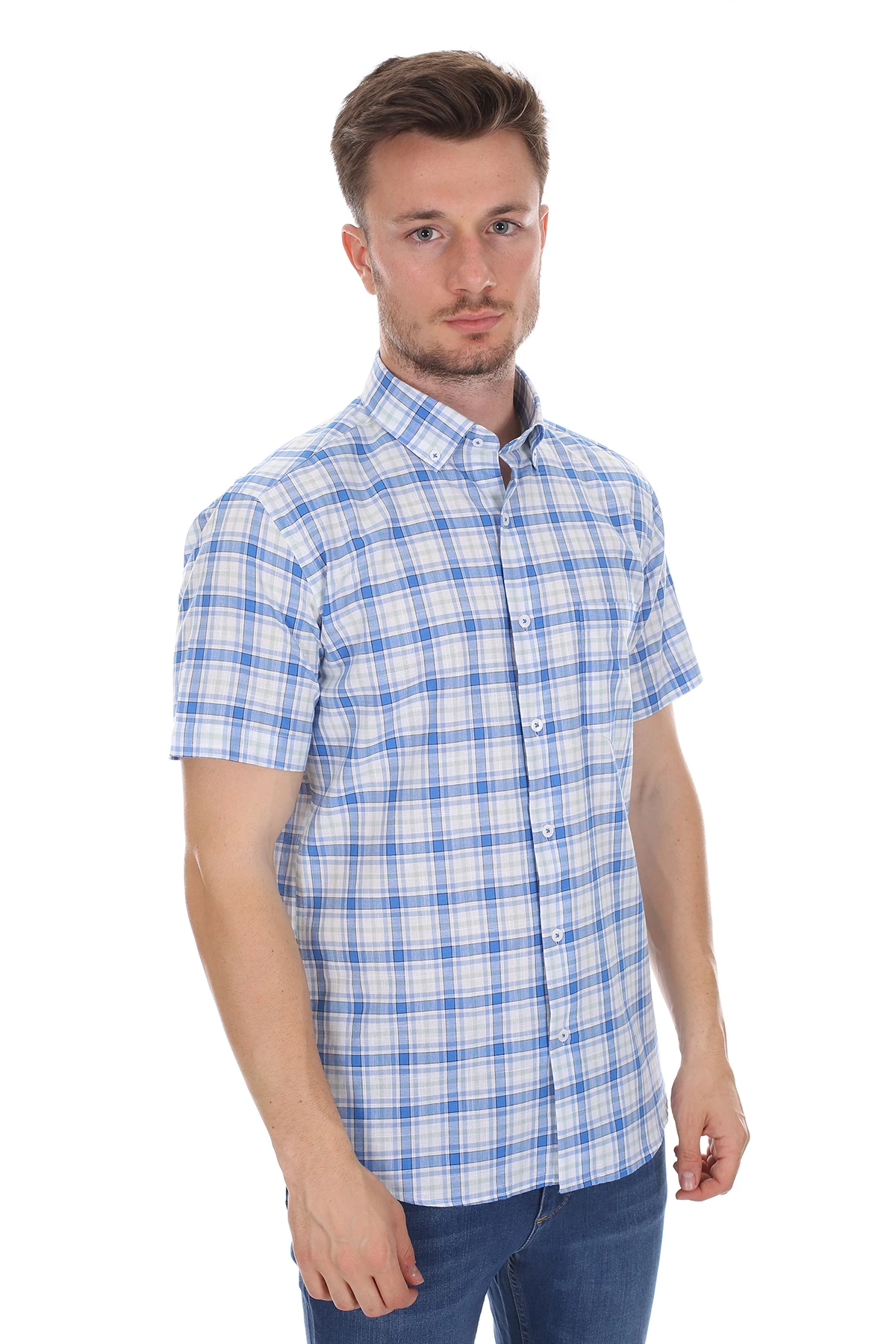 Needion - Diandor Kısa Kollu Erkek Gömlek Mavi/Blue 2112054 2XL