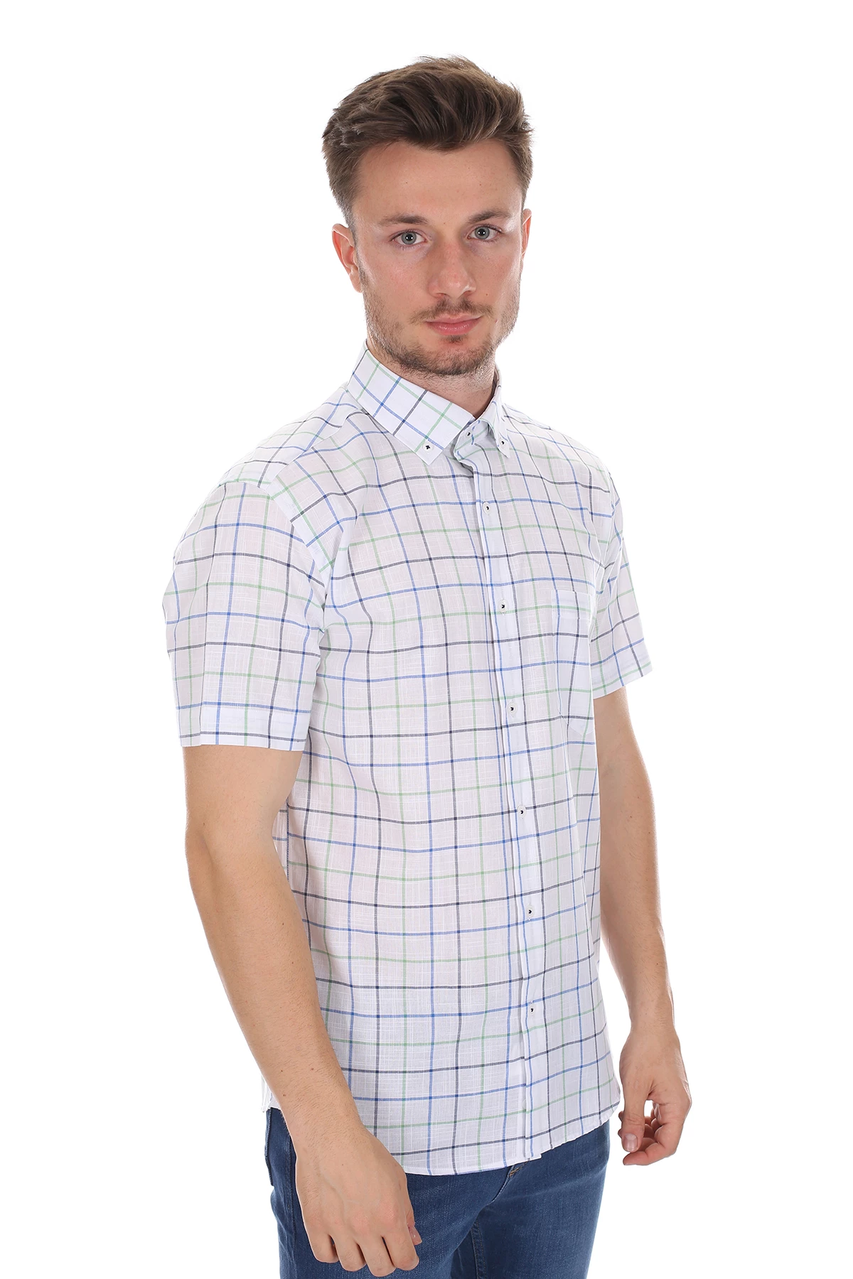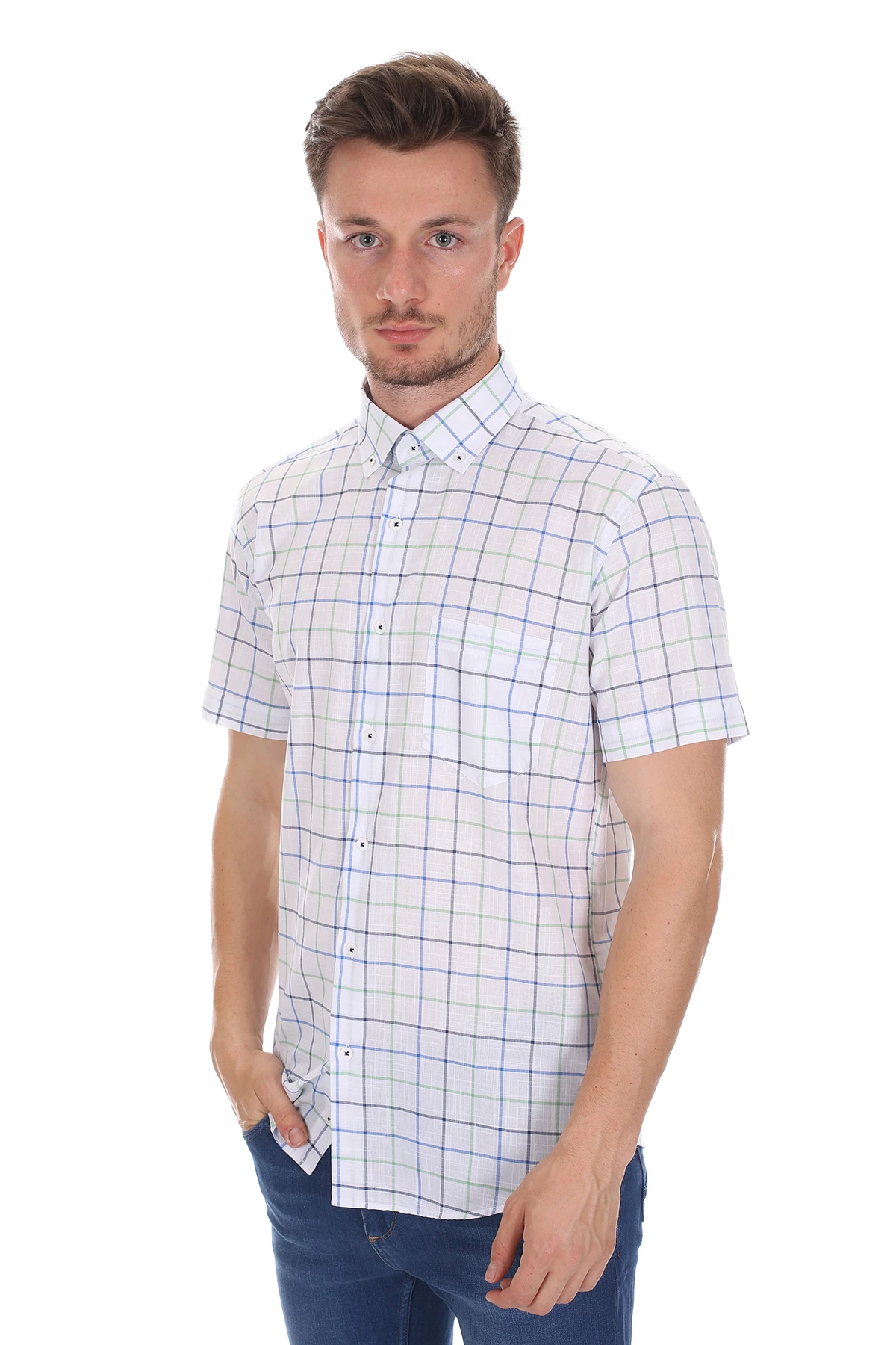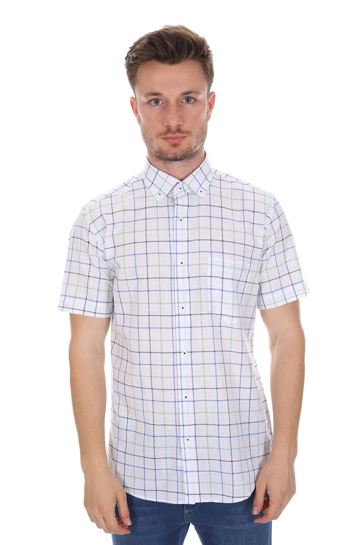 Needion - Diandor Kısa Kollu Erkek Gömlek Yeşil/Green 2112053 Yeşil 2XL