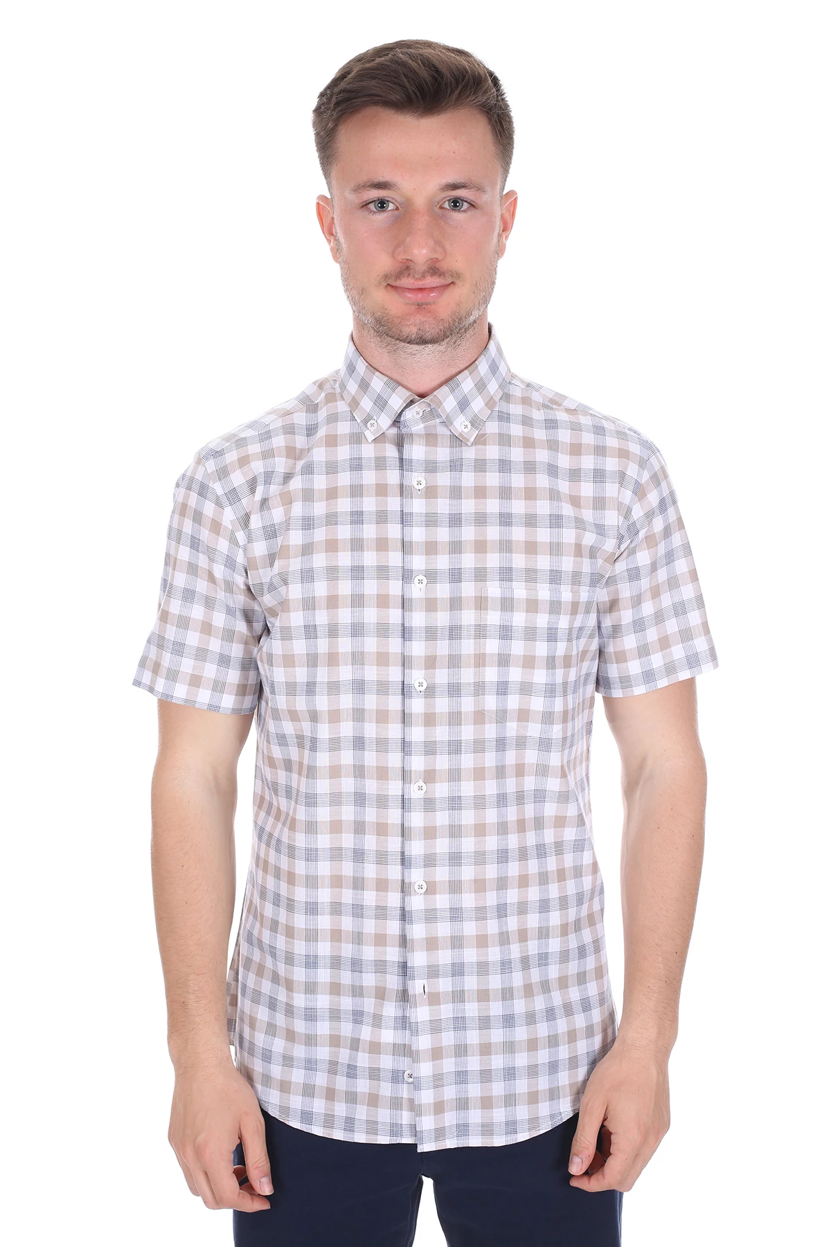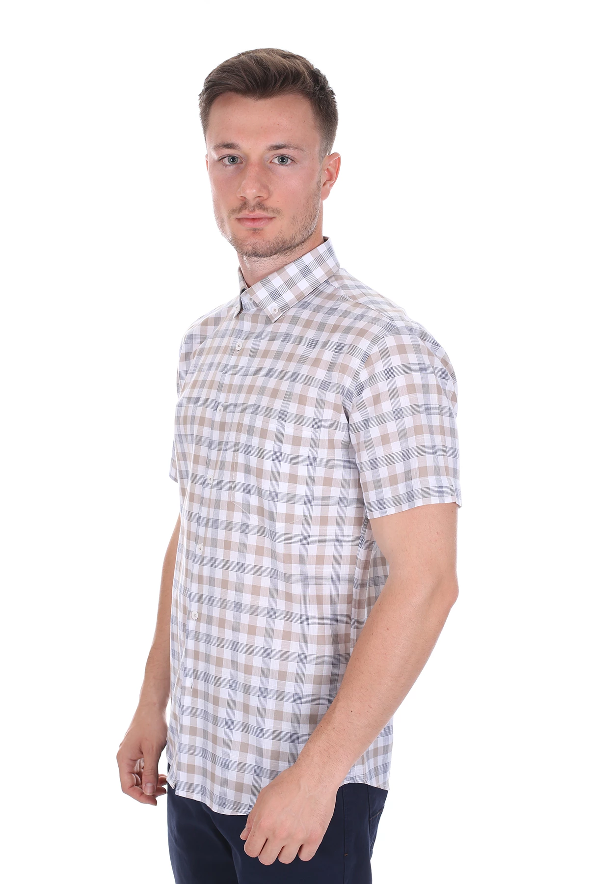 Needion - Diandor Kısa Kollu Regular Fit Erkek Gömlek Bej/Beige 2112051 M