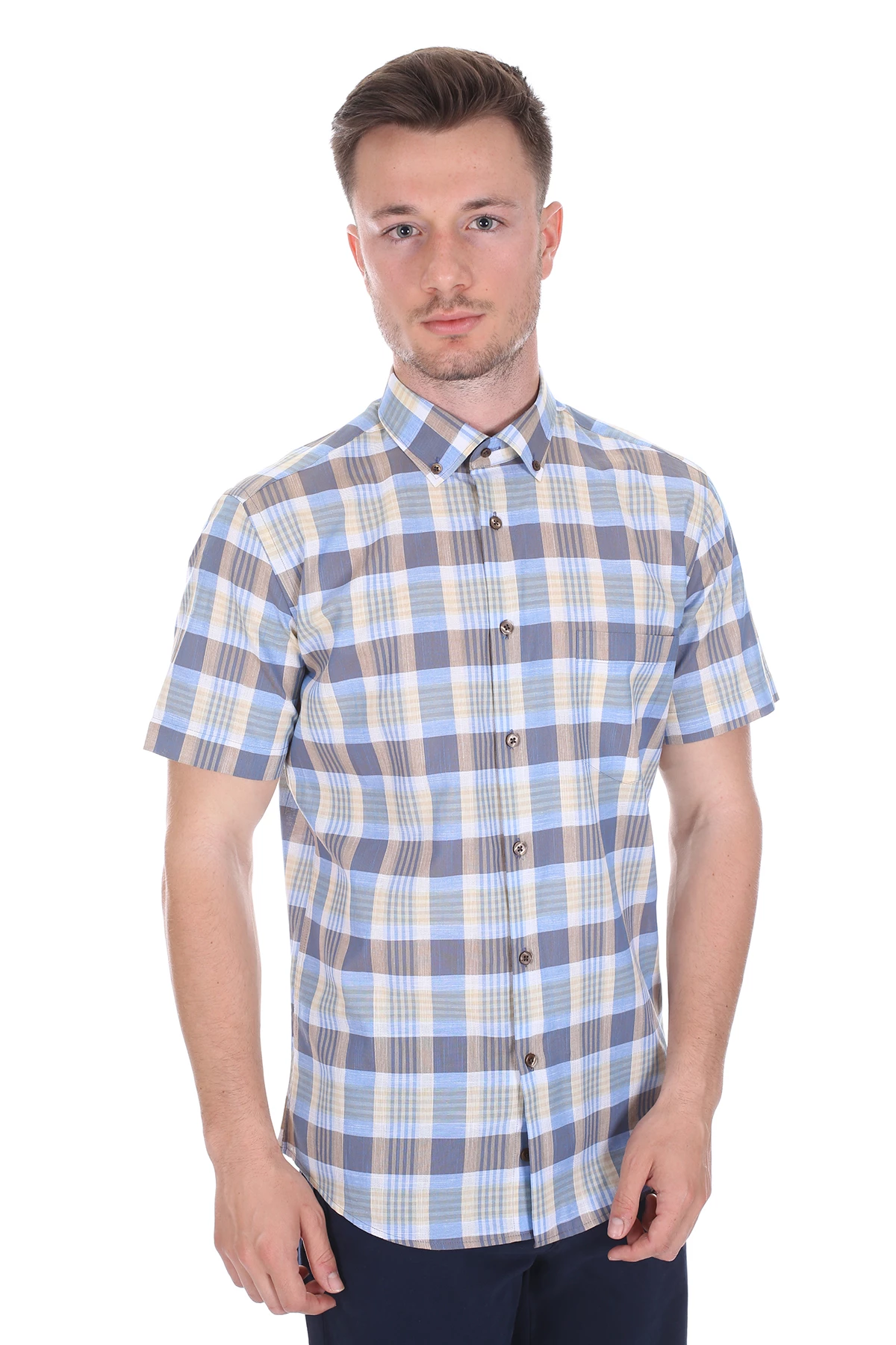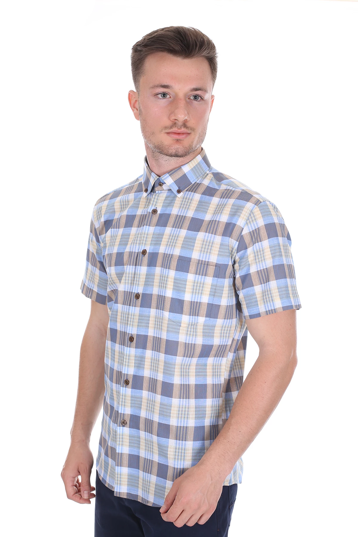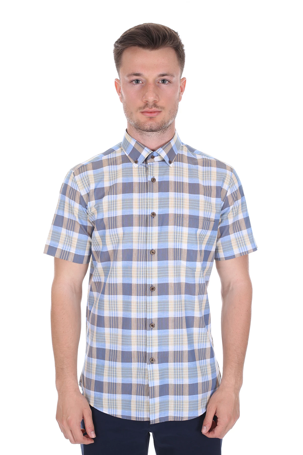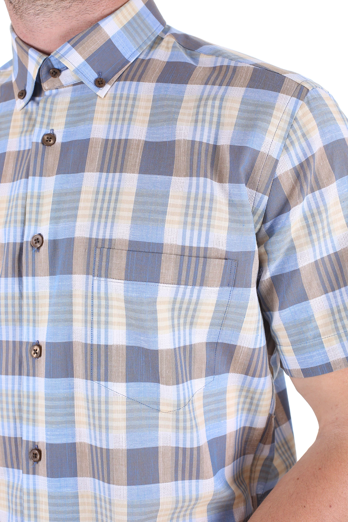 Needion - Diandor Kısa Kollu Regular Fit Erkek Gömlek Bej/Beige 2112060 2XL