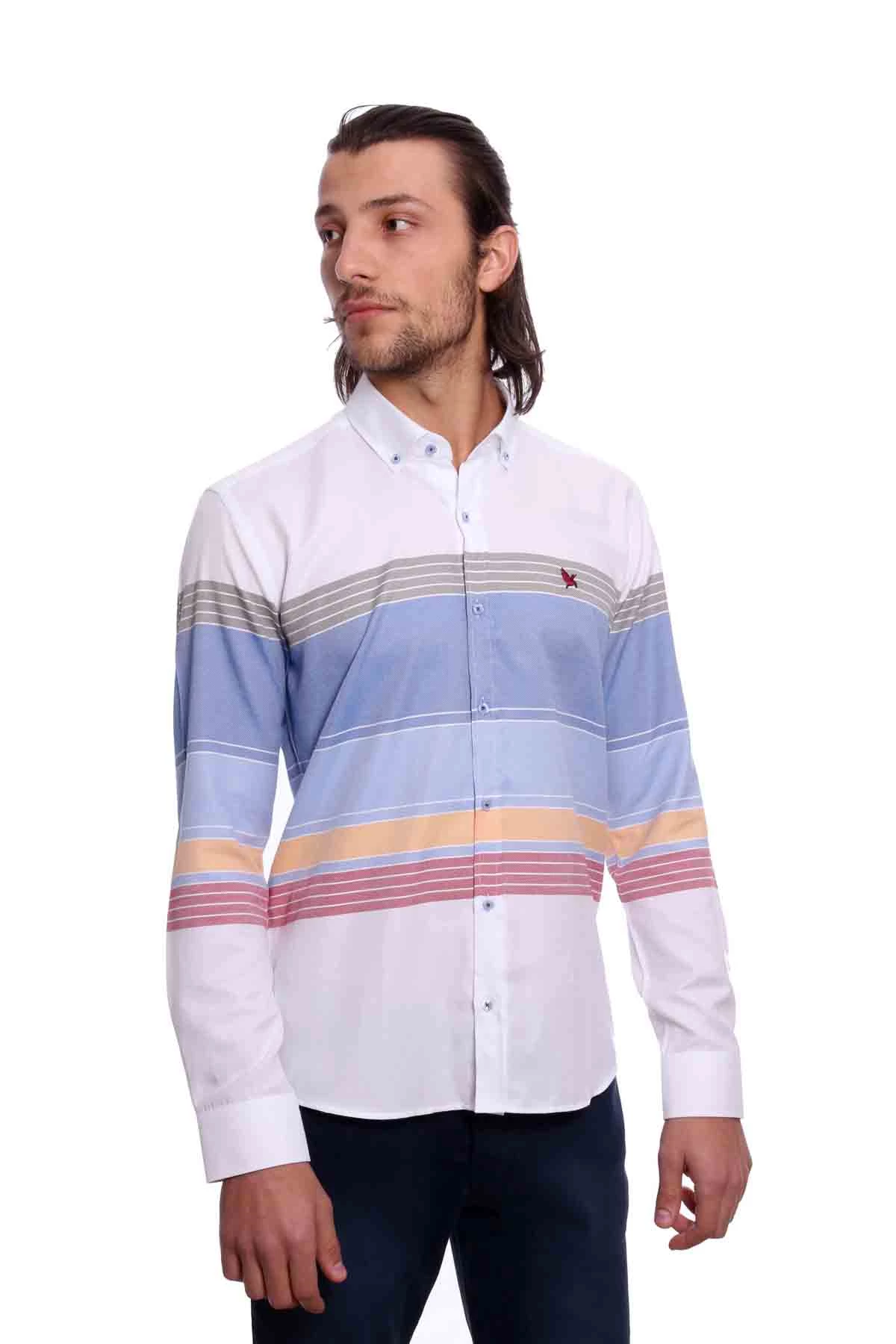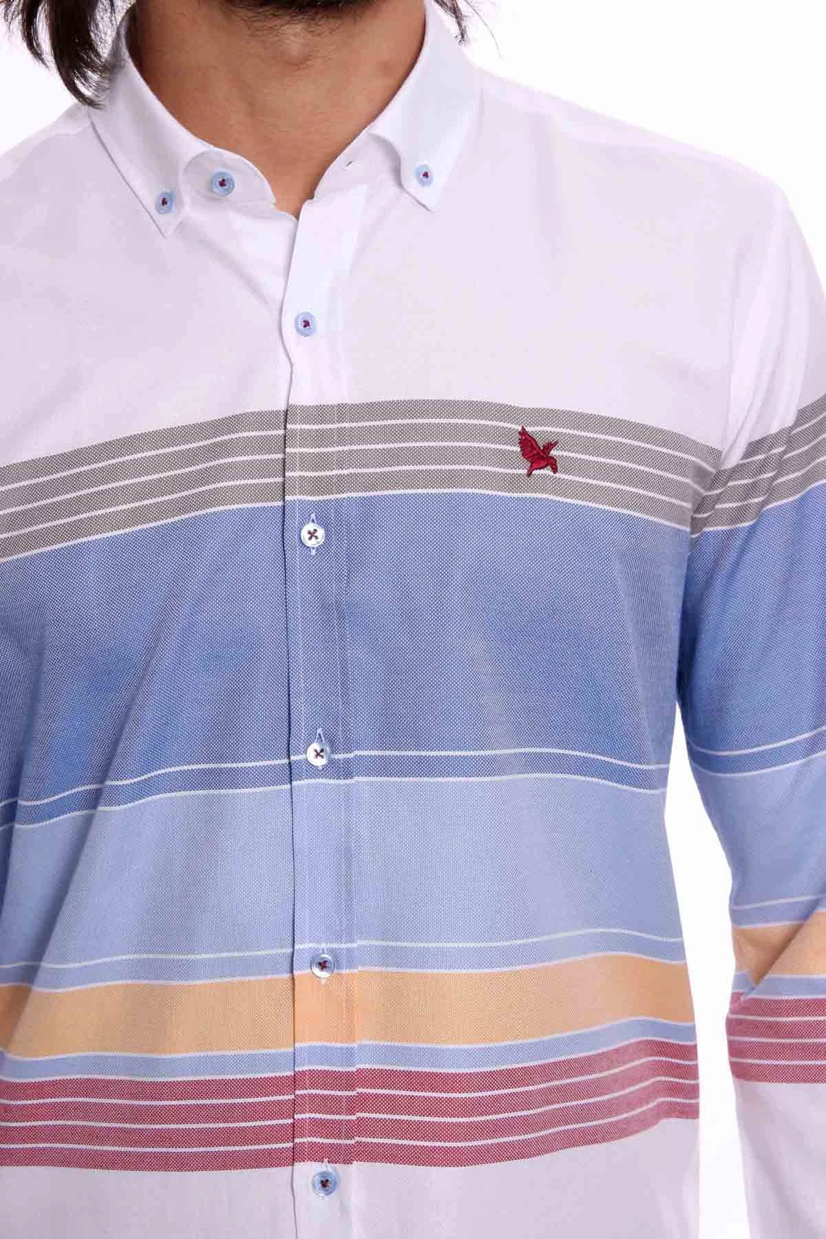 Needion - Diandor Uzun Kollu Erkek Gömlek Beyaz Mavi 1912030 2XL